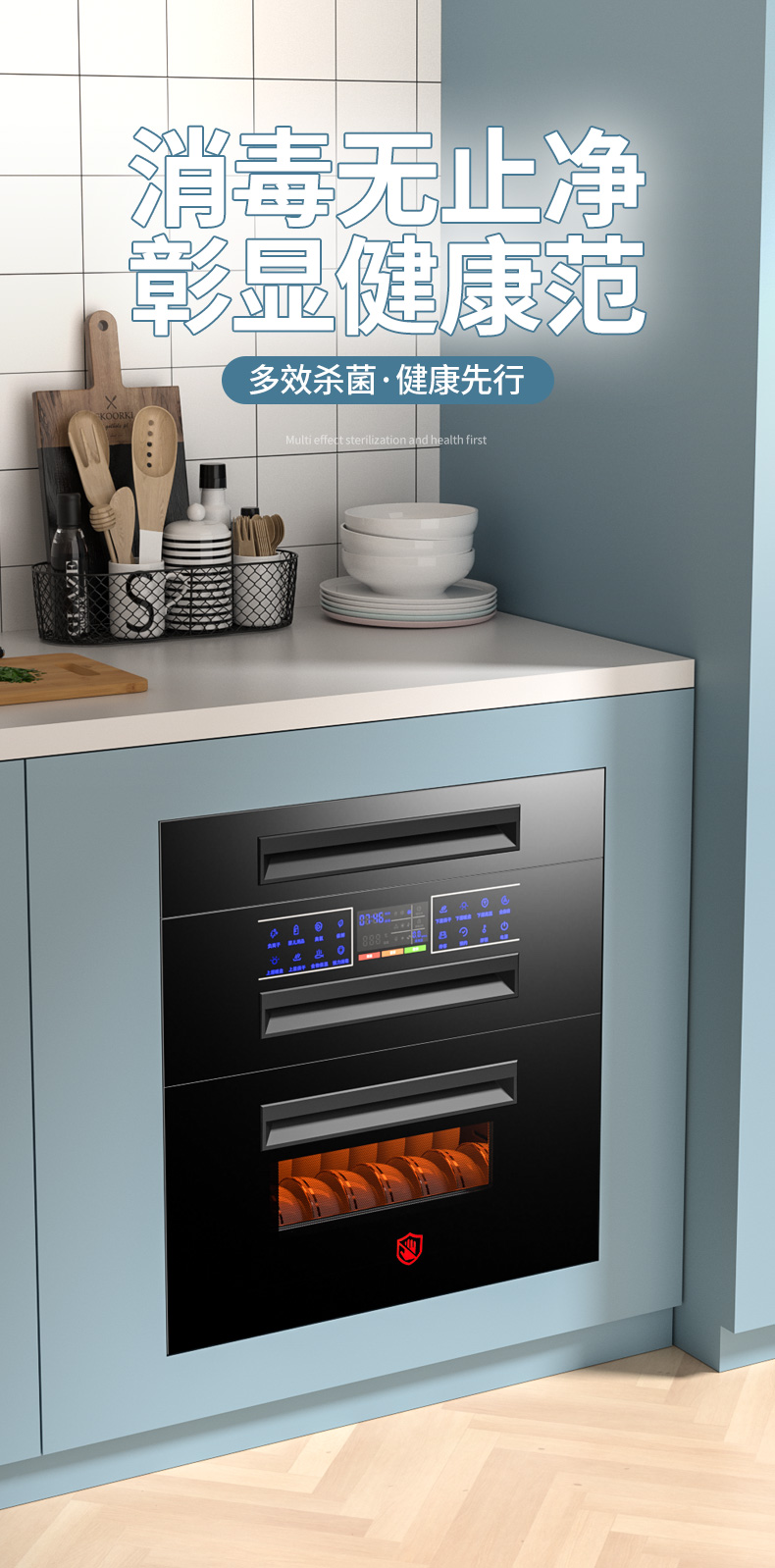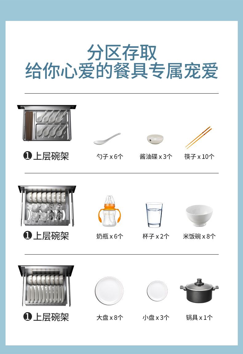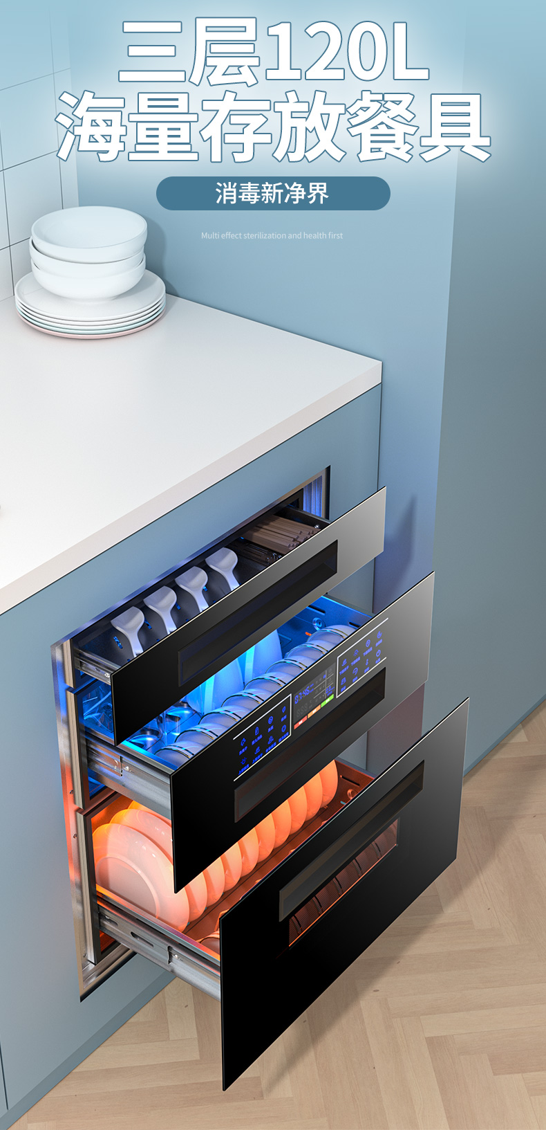 惠普好太太消毒柜家用嵌入式小型厨房三层120L紫外线碗筷消毒碗柜