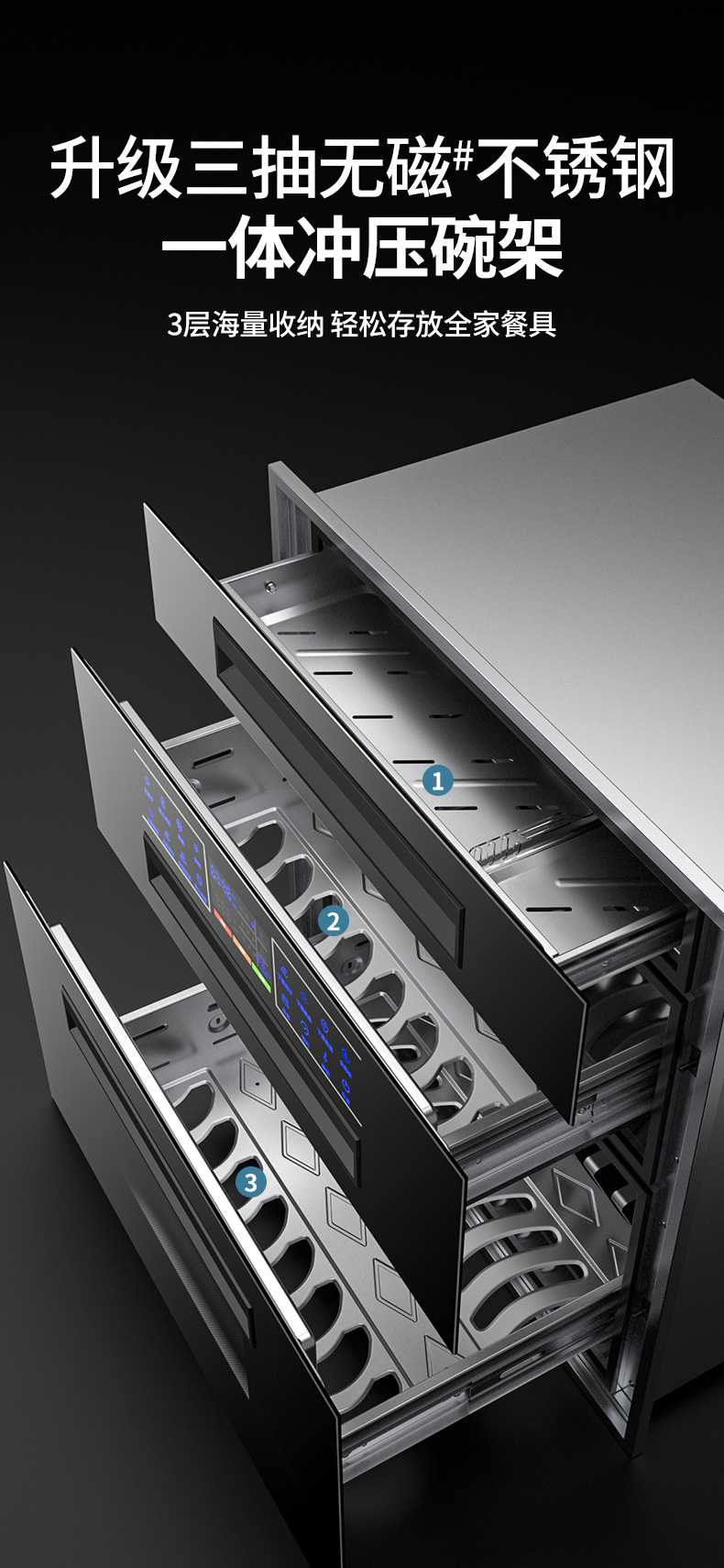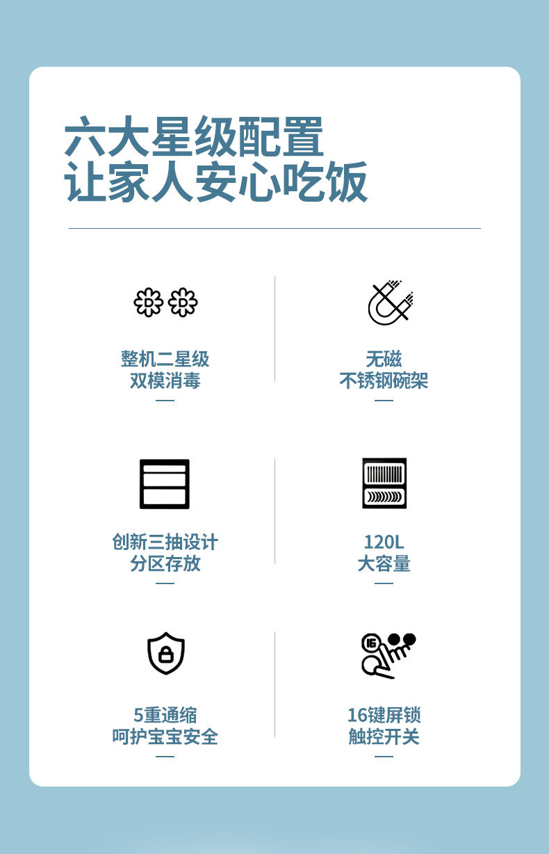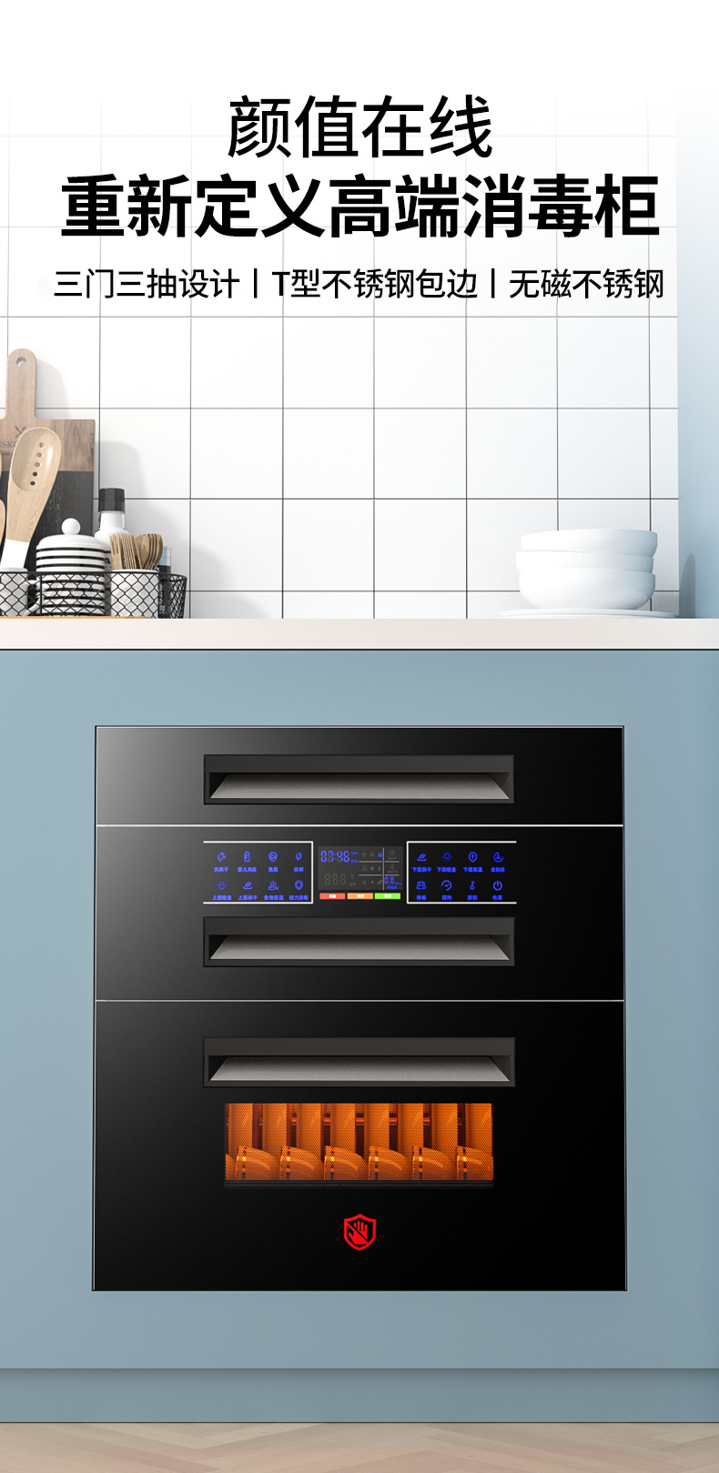 惠普好太太消毒柜家用嵌入式小型厨房三层120L紫外线碗筷消毒碗柜