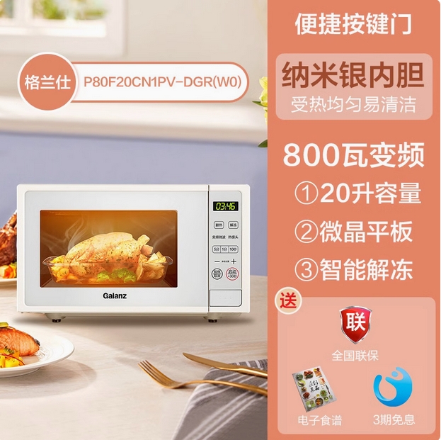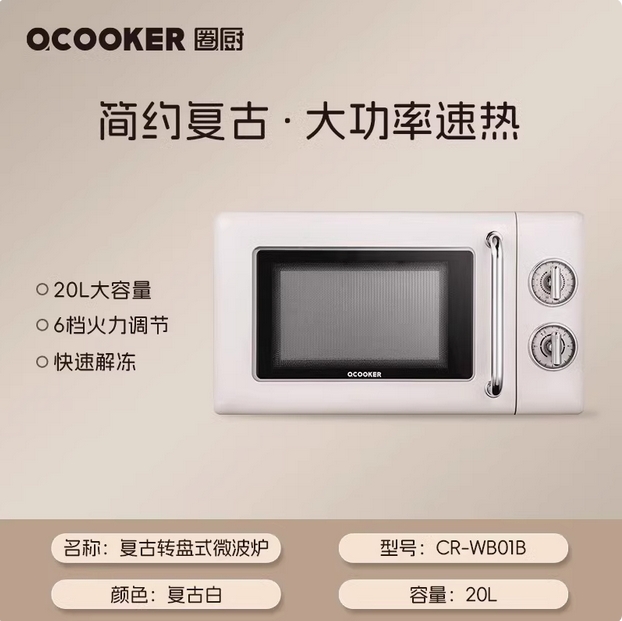 圈厨经典复古微波炉20升家用全自动转盘微波加热小型