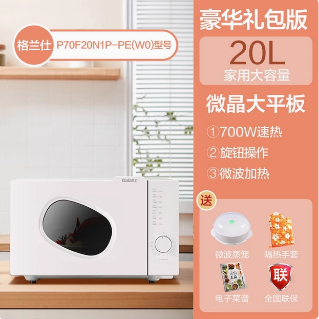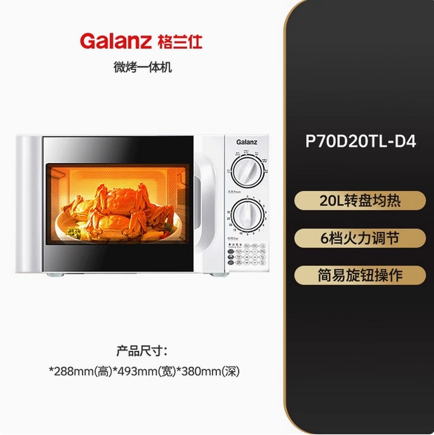 格兰仕复古多功能微波炉平板20升一体机械式家用小型迷你微蒸烤箱